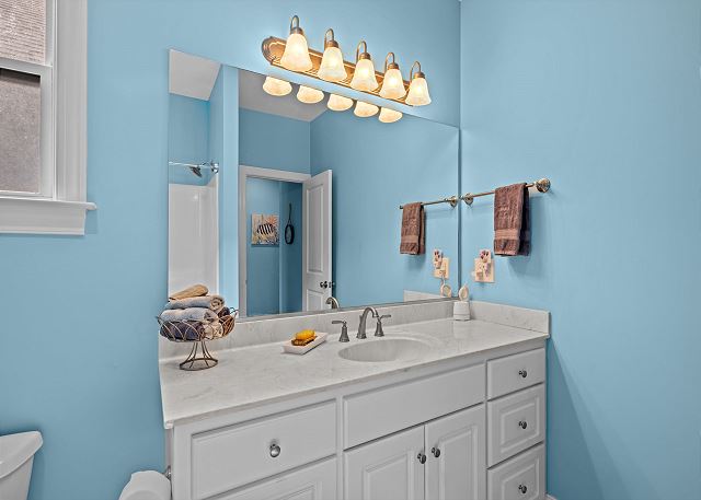 2 full bathrooms + outdoor shower – Because beach days deserve easy clean-up.